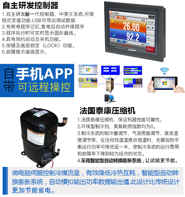氣冷式/單段壓縮機(jī)(-20℃);雙段壓縮機(jī)(-40℃—-70℃)